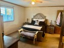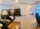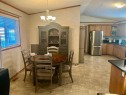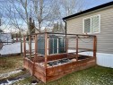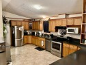 Ideal home with wheel chair access. This 2012 home is 1520 sq ft. 4 bedrooms and 2 full baths, one bathroom is set-up with an easy access walk-in shower. The living room, dining room and kitchen is an open floor plan with 9 ft. vaulted ceilings. The spacious kitchen is equipped with stainless steel appliances and an abundance of cabinetry with the dining area off to the side. The living room is a comfortable area for the family to enjoy. At the one end is 3-bedrooms and a 3-pce. washroom with a walk-in shower. The other end is the primary bedroom with a 4-pce ensuite and walk-in closet. The laundry room is at the back entrance along with the furnace and hot water tank. The 12X40 deck is covered and screened in for a nice 3-season area; with a long wheel chair access ramp which carries on into the back yard to the gazebo. The 2 sheds are included with garden boxes. There is also a thriving apple tree in the yard. This home and yard shows beautifully and is neat as a pin. Water, sewer and garbage are included in the lot rent.