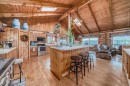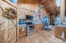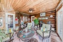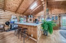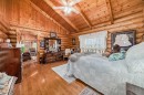 There won't be a moment that you won't say "wow" to this award winning acreage when you drive into this sensational property located on pavement at the end of a dead end road close to Rocky Mountain House and Caroline. Nestled within the trees, this beautiful log bungalow has "Welcome": written all over it. From the exceptional landscaping, to the outdoor amenities to the one in a million view of the Clearwater River, this hand crafted log home has been exceptionally built and maintained. The wrap around deck and covered porch leads you into the main living space with a central kitchen area complete with corner pantry and an eating bar for your family to gather for those special events. The living room with woodstove invites you to cozy up for the evening and the convenience of your primary bedroom on main floor shares a luxurious ensuite with a claw tub and heated floors. The sunroom/reading room is located directly off the primary bedroom. The downstairs walkout houses 3 bedrooms a large family room with wet bar and both storage and a cold room. Not enough can be said about the parking as there is a heated double attached garage along with a 16 x 48 motorhome garage, and a combination of shop areas which are 8x24,12x32,14x32,24x32 and 32x32 and 8x14. There is a hayshed, gazebo, fruit trees, grassed pastureland and access to the river. Animal friendly property that has been fenced complete with water bowl. This is one of those properties that needs to be seen to truly be appreciated.
